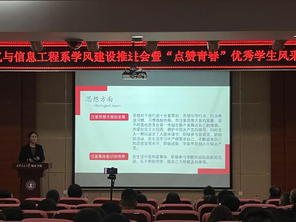 此次学风建设推进会暨“点赞青春”优秀学生风采展充分展示电信学子的优秀事迹,发挥正面导向和模范引领作用,营造浓厚的“比、学、赶、超”氛围。融入“以奖促学”的理念,充分展现了我系对学院学风建设工作的积极响应,有利于电信系形成良好的学风,从而促进后续学风建设工作的顺利开展。