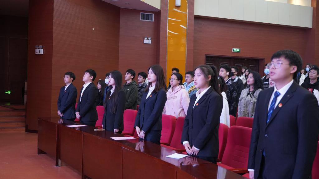 会议伊始,全体奏唱团歌。随后,团学工作负责人杨月为同学们讲解“新时代团学干部的使命与担当”。杨月从“对党忠诚”“担当实干”“群众路线”“廉洁自律”四个方面展开论述,明确了做好新时代团学干部的四个关键点,号召团学干部用自身的实际行动书写使命与担当。