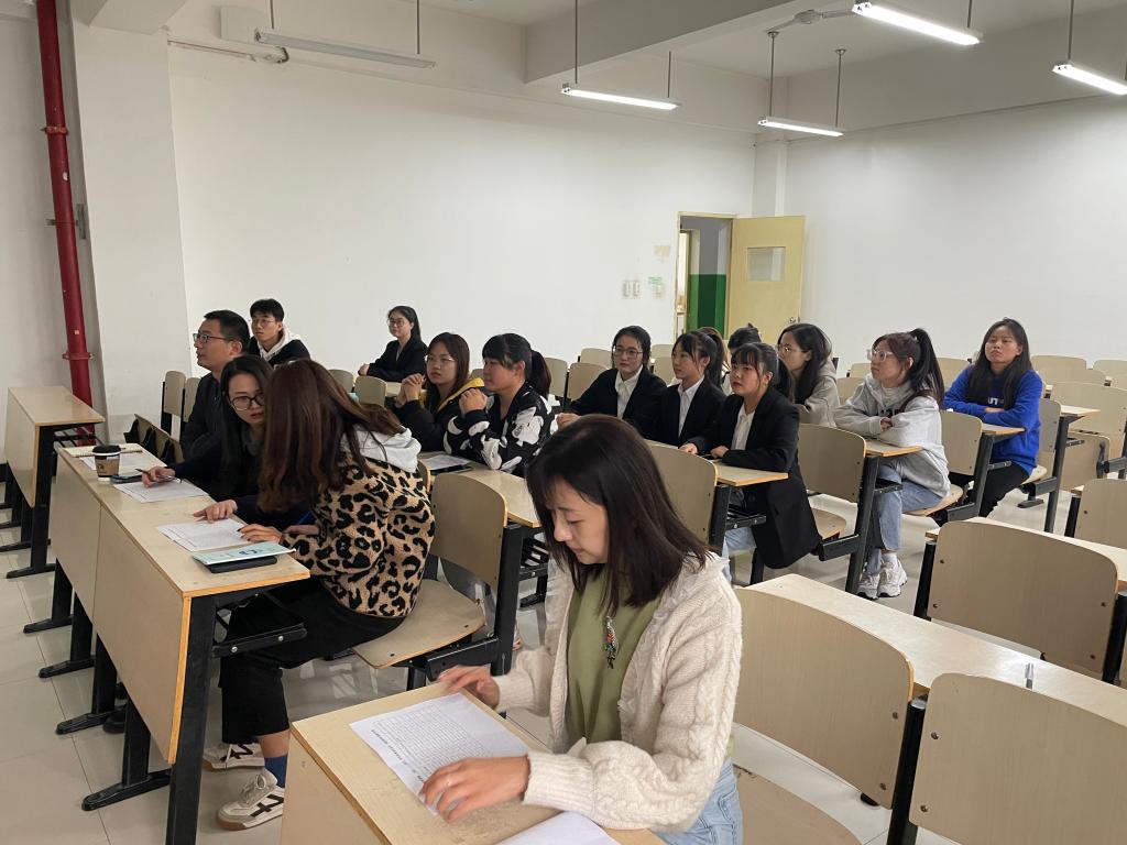 为全面落实评选学院优秀学生标兵和国家奖学金公平公正公开的程序,依据学院资助中心关于国家奖学金评选文件的通知,经过学生自主申请、系内初审,外语系于2022年10月7日在教学楼B316举办优秀学生标兵候选人答辩会,本次答辩的评审委员由外语系主任助理吴夫迎,英语教研室张一帆、付渝,学工负责人关天骄,辅导员韩蓉五名老师组成,大二至大四共有8名学生参加答辩,各年级优秀学生代表10人观摩、学习。