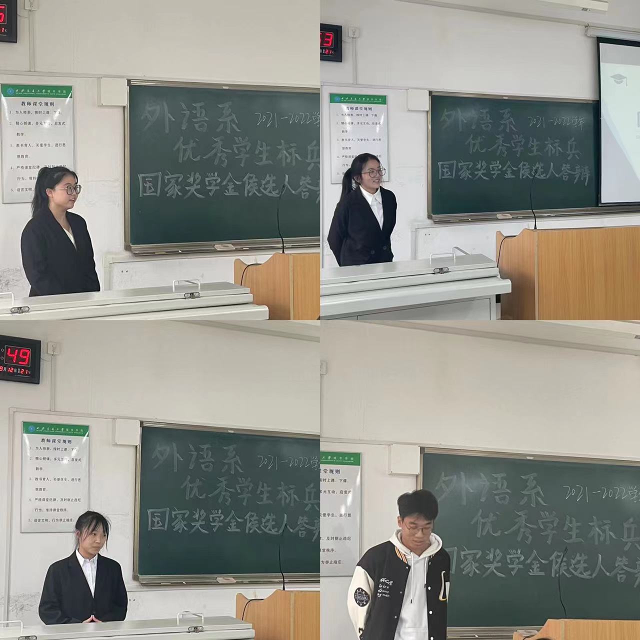 本次外语系优秀学生标兵和国家奖学金答辩会为学生提供了展示自我、公平竞争的舞台,积累了答辩经验,候选人纷纷表示将坚定信念,勇攀高峰,努力成为全面发展的综合性人才。