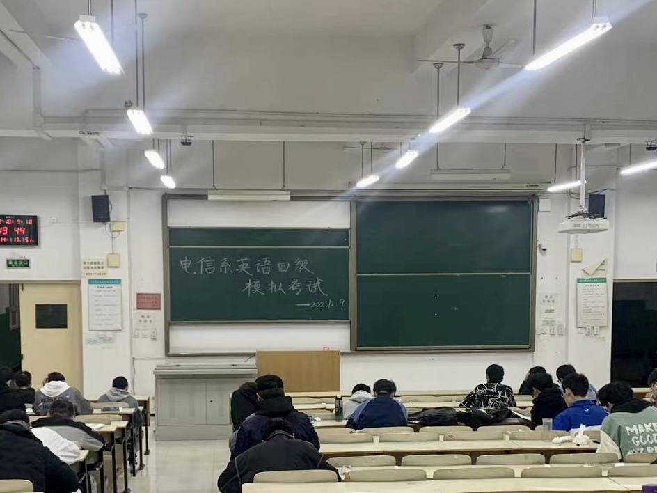 电信系也面向21级学生展开了一次大学英语四级模拟测试,各班学习委员积极与英语代课老师沟通并达成一致,使学生的模拟测试题做到应讲尽讲,保证高质量的有效测试。希望通过此次英语四级模拟测试,使同学们积极参与训练,熟悉英语四级考试流程,提高合理分配时间的能力,掌握题型分值分配,发现自身英语的薄弱环节。