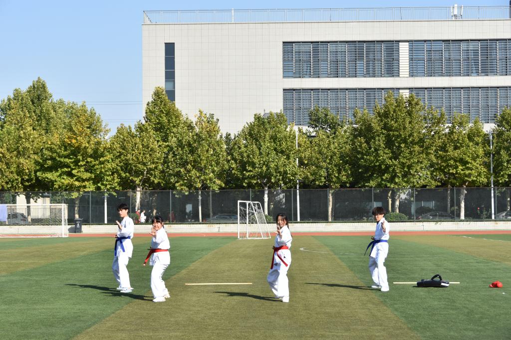 绿色竞技场,活力无极限。比赛正式开始前,体育部为小朋友们准备了精彩的武术表演。观看结束,小朋友们开心地做着赛前热身。