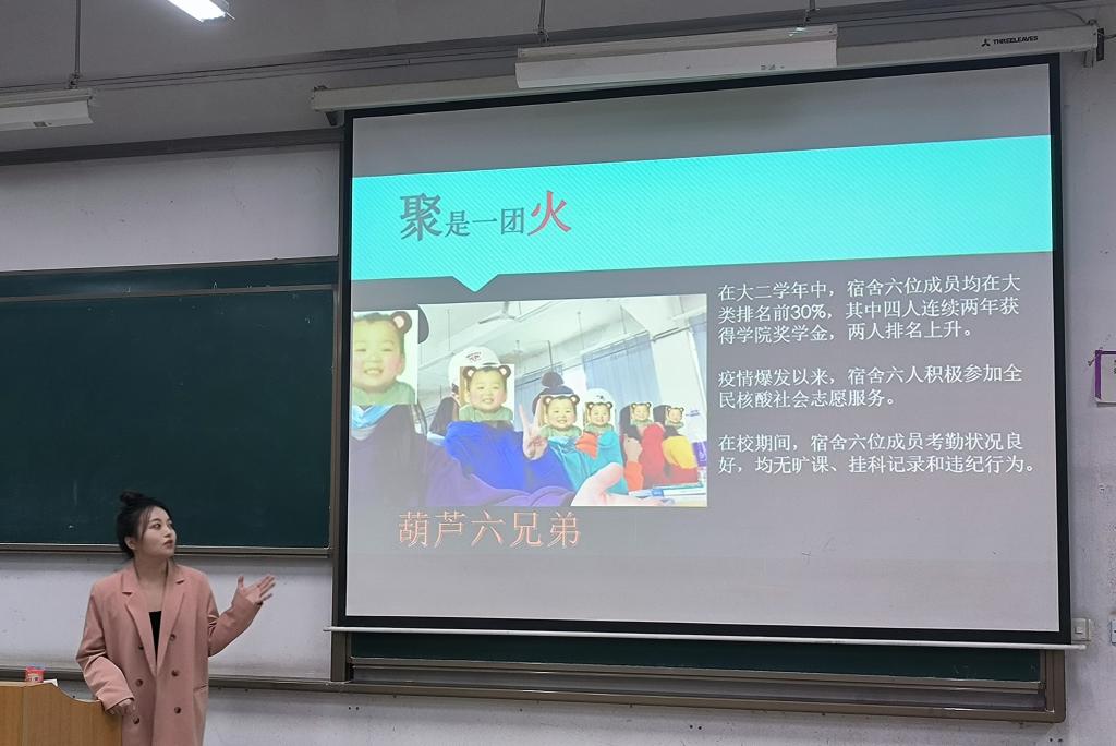 在“优秀宿舍”和“优秀班级”的答辩过程中,来自不同年级的学生代表分别从班风建设、学风建设、宿舍文化建设、亮点特色等多个方面介绍了他们在上一学年取得的优异成绩。同时,参加答辩的同学们也真挚地表达了自己在班级和宿舍中与同学们、舍友们的友好相处、共同努力的喜悦之情。参加答辩的同学们无不透露着奋发向上的青春气息,充分地展现了团队精神和传播学子应有的风采。