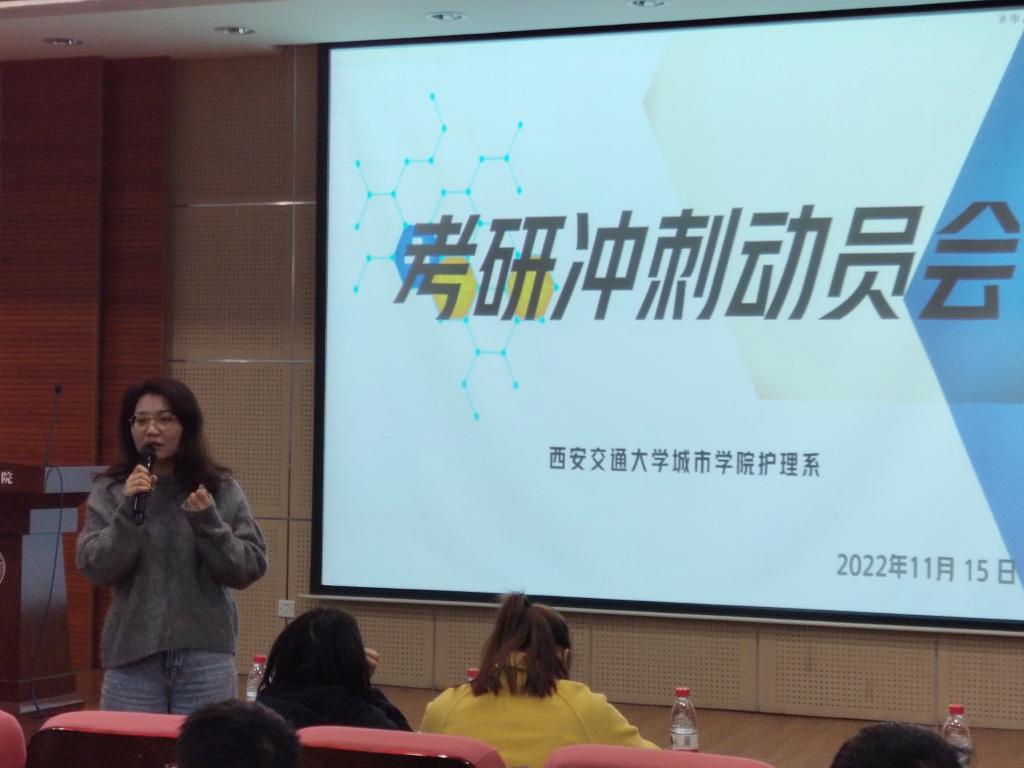 为进一步激发考研学生的拼搏精神,增强考研学生的备考信心,更好地为考研学生做好各项服务保障工作。yl7703永利官网护理系于11月15日在F100开展2023届考研冲刺动员会。参加本次会议的人员有护理系常务副主任王梅芳、护理系教师冯秀娟、齐亚楠、毕业班辅导员王娇丹、董鑫行。