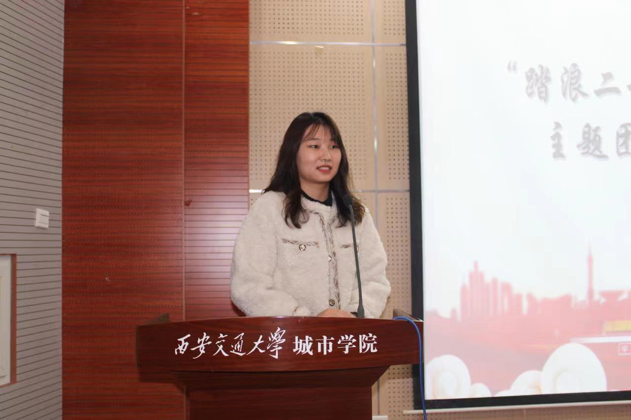 管理系团工委代表马君楠同学发言,她向大家主要介绍了什么是团日活动和团日活动的意义,提出要增强同学们办好活动的信心斗志,积极推进三风建设,让同学们寓学于乐,创造良好的校园氛围。