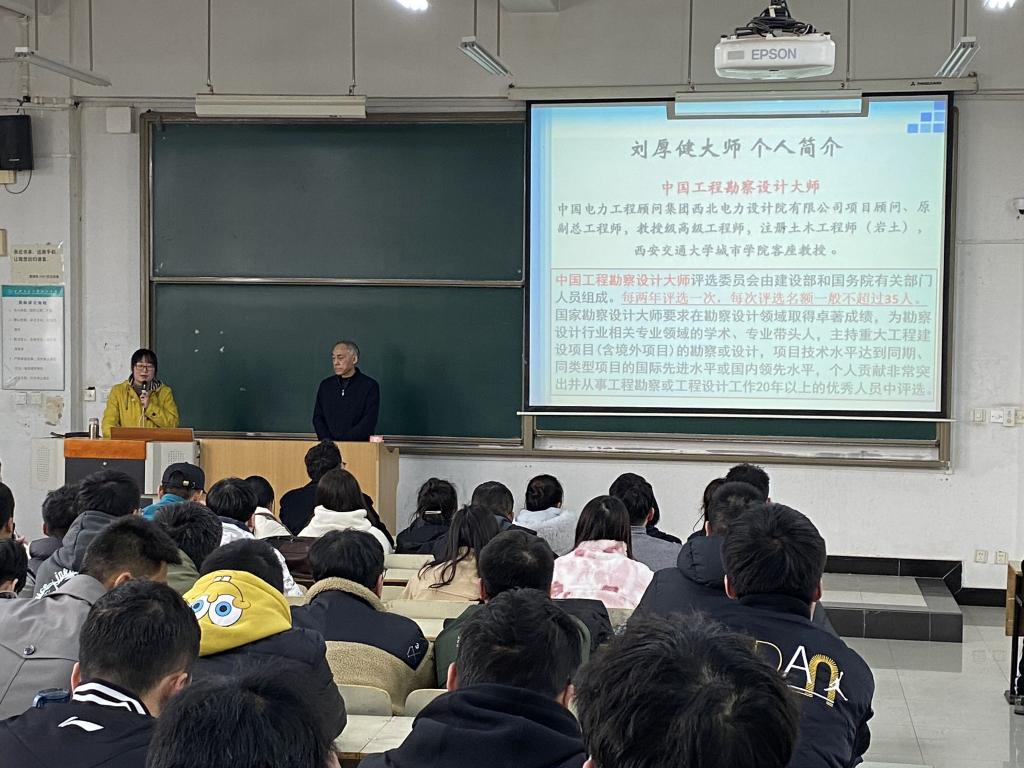 为更好提升专业人才培养质量,推进学科交叉融合创新,深化新时代工程应用型人才培养内涵,土建系在2020版培养方案中新增交叉学科选修课程《岩土工程勘察》,邀请全国工程勘察大师、教授级高级工程师、yl7703永利官网客座教授刘厚健作为主讲教师。 在课堂中,刘教授首先以西安城墙、青藏铁路、秦岭隧道和上海金融中心等中国著名工程为例,讲述了土木工程在社会发展进程中凸显的重要地位和意义,在课程讲授中向学生传达作为一名土木工程师必备的专业素养,向学生展示了“课堂所学”与“工作所用”之间的联系,指出专业课程设置是多年的积累和社会反馈。刘教授的课程深入浅出,理论结合实际,将岩土工程勘察和土木工程建设有机融合,在授课过程中,刘教授还勉励学生认真学习专业知识,励志成才,学生认真听讲,不时为刘教授送上热烈的掌声。