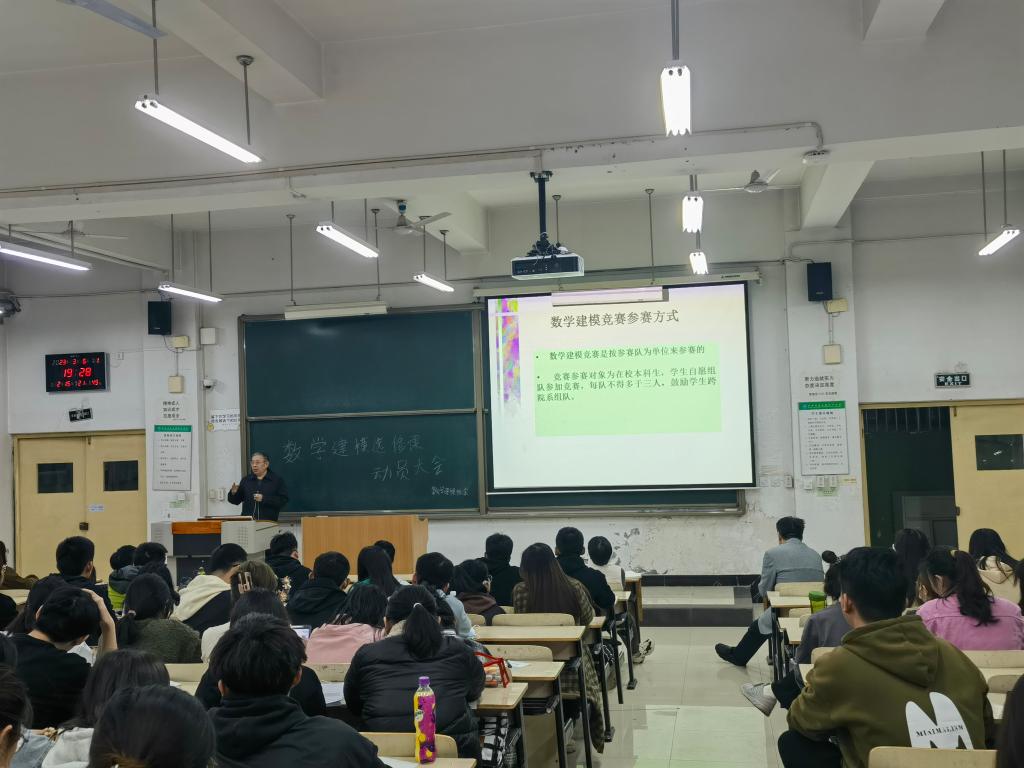 为进一步加强大学生创新精神、实践能力和团队合作精神的培养,提升学生数学建模水平。3月6日晚,由数学教学部、数学建模协会组织,在教学楼C100教室举行了数学建模选修课动员会议。本次会议由数学教学部董福安教授主讲,学院副院长朱旭教授、数学教学部主任张世梅出席并发言。
