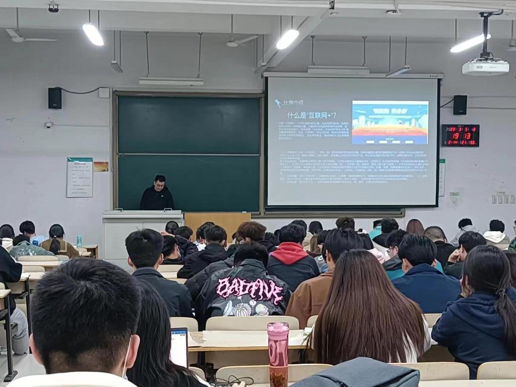 活动伊始,第八届“互联网+”大学生创新创业竞赛省级铜奖获得者杨景凯向大家介绍了“互联网+”创新创业大赛的参赛规则,并就组建团队和项目筹备及竞赛过程中如何战胜困难取得最终成功的历程进行分享。随后,学院第十届创新创业竞赛优秀奖“五谷丰登”团队负责人王华天说明了三创赛和“互联网+”创新创业大赛的差异,为学生参赛的选择提供了新的思路。他以自身团队的项目为例与大家交流了如何进行选题的经验,从九个方面解析优秀项目计划书的书写要求及内容安排,并提倡各参赛队伍要多进行数据的调查收集分析,做到科创融合和产教融合。