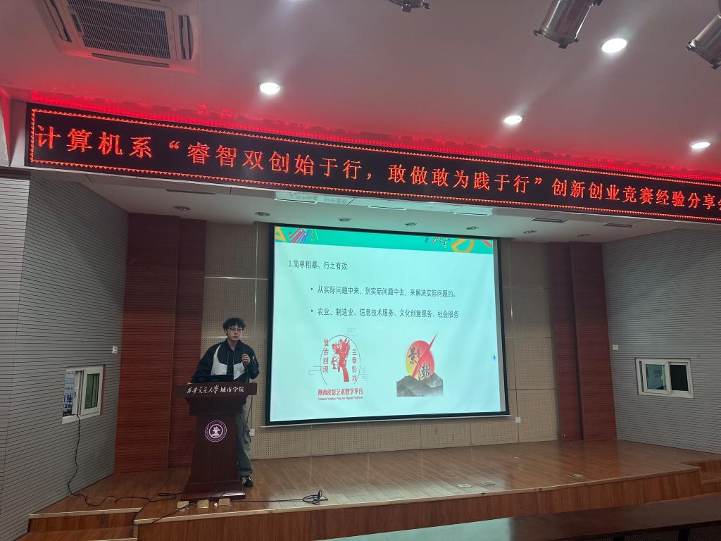 为了促进计算机系学子进一步了解第十一届创新创业竞赛,营造“我敢闯,我会创”的创新氛围,yl7703永利官网计算机系于3月7日在F100报告厅召开了“睿智双创始于行,敢作敢为践于行”创新创业竞赛经验分享交流会。这次分享交流会邀请计算机2001班刘峻银同学、计算机国际2001班王佳豪同学为主讲嘉宾。刘峻银同学曾获得第十一届“挑战杯”陕西省大学生创业计划竞赛铜奖、(第八届)“建行杯”中国国际“互联网+”大学生创新创业大赛陕西省铜奖;王佳豪同学获得(第八届)“建行杯”中国国际“互联网+”大学生创新创业大赛陕西省铜奖,两位同学都具有丰富的竞赛经验。本次经验交流会他们与计算机系优秀学生代表分享参加比赛的前期准备与规划,为同学们提供了宝贵的经验和积极正确的导向。