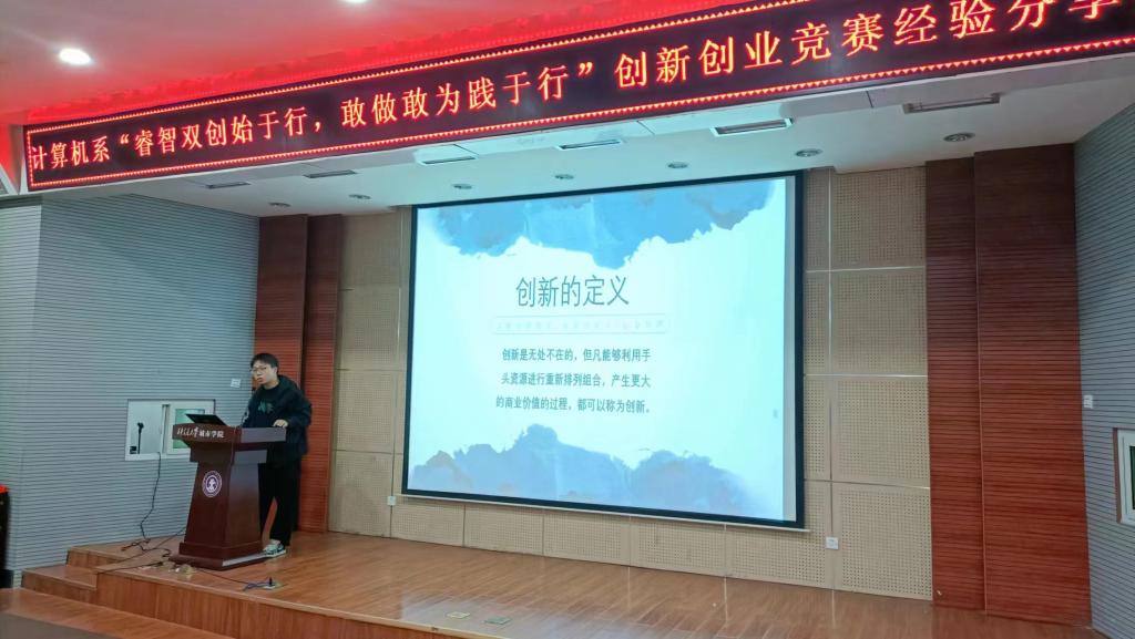 最后,计算机系创新创业负责人范文彬对两位同学的获奖经验进行总结,强调应从解决实际问题出发,提出真正行之有效的项目,不能忽略任何一个细节,并鼓励同学们勇敢迈出第一步,挑战自我,实现理想。