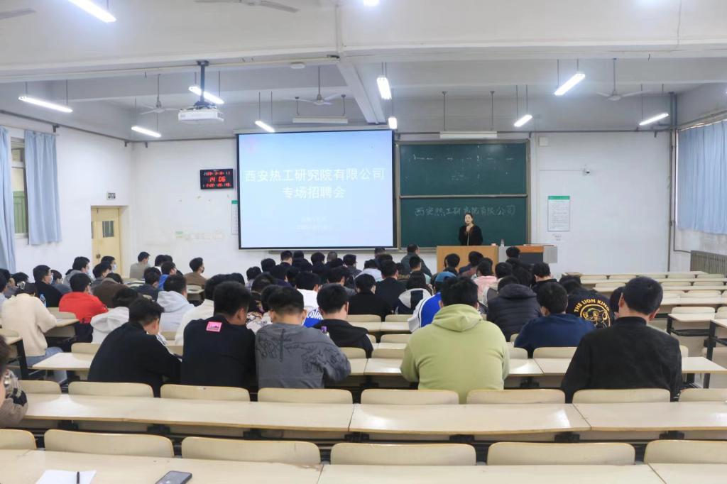 西安热工研究院有限公司电站性能技术部副主任赵永坚,电站性能技术部总工程师赵杰,电站性能技术部汽机研究所所长张朋飞,电站性能技术部锅炉研究所所长徐远纲参与了招聘会。本次招聘会主要由张朋飞所长主讲,张所长对本次招聘的单位情况进行了介绍,并介绍了企业的业务范畴、企业文化、薪资福利、晋升空间等内容。