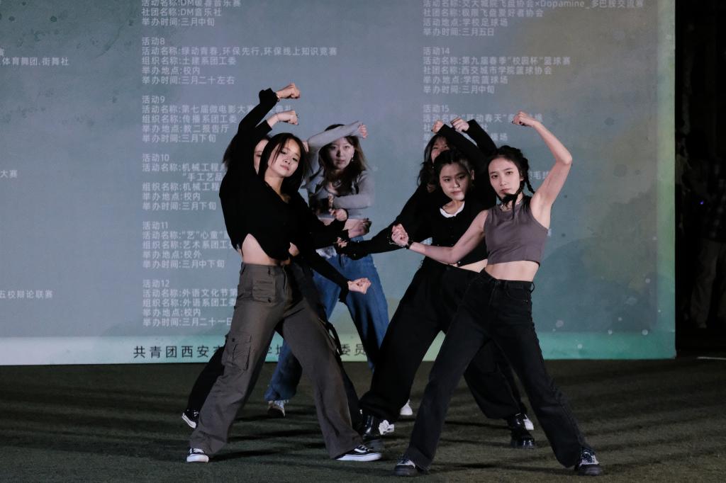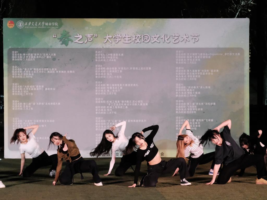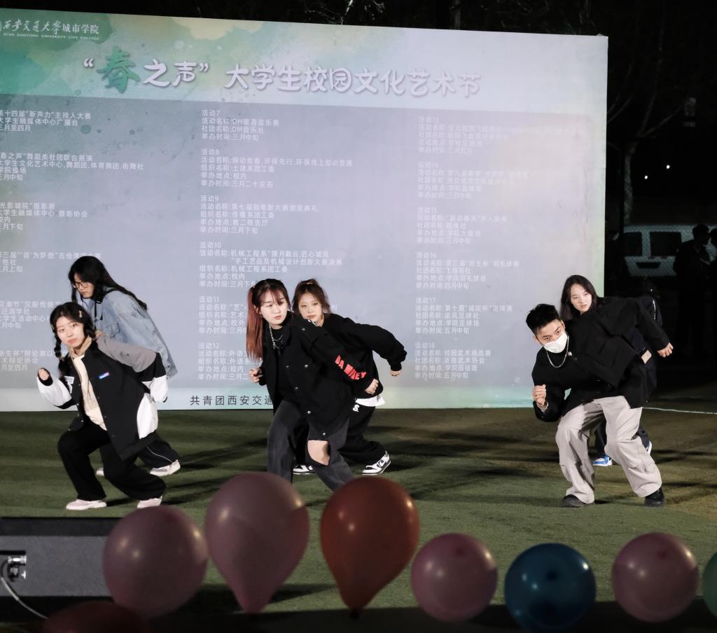 活动中,不仅有脍炙人口的说唱、流行歌曲助阵,更有爵士、拉丁、街舞等多种风格的现场舞蹈秀,引来台下观众席欢呼声不断。为感谢各位同学们的现场助阵,更是精心设计了现场抽奖送小礼品的环节,将现场氛围推至高潮。手中挥动的荧光棒、人群中的星光点点,校园里的张张笑脸汇聚成了城院春天最美的模样。
