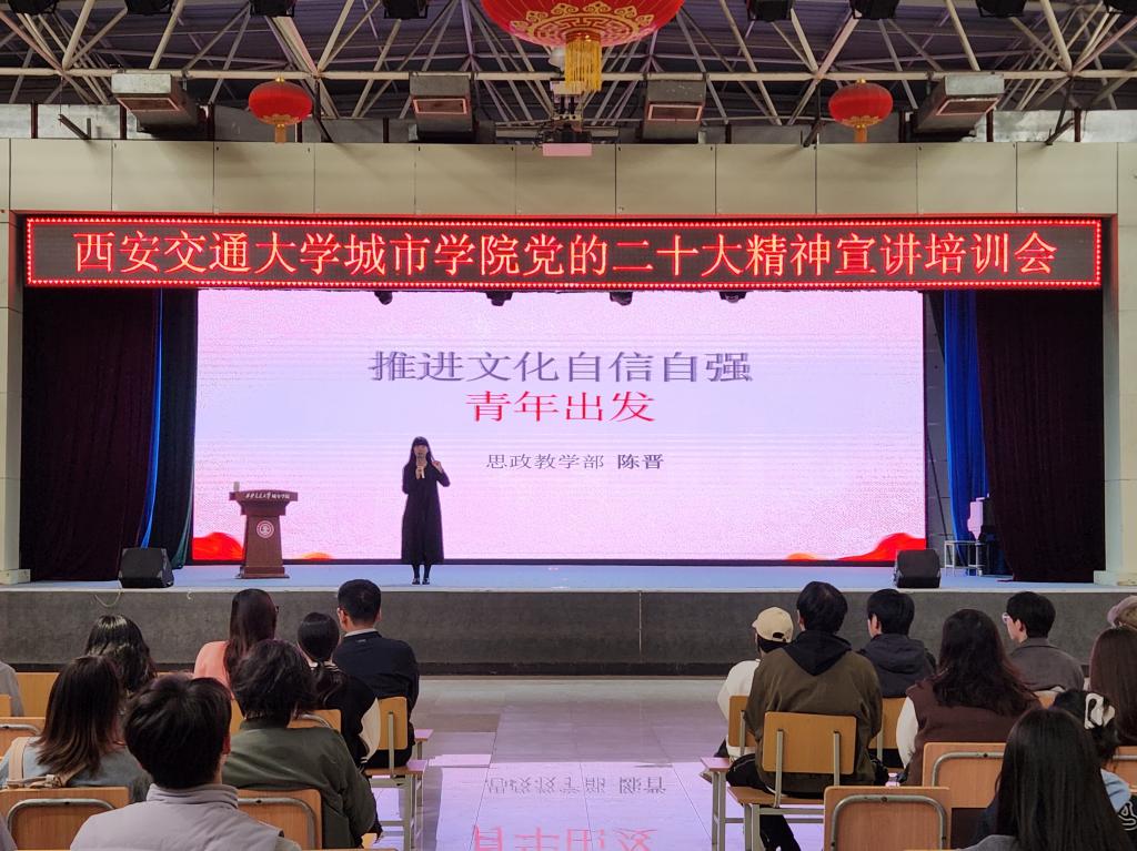 培训期间,陈老师以《推进文化自信自强,青年出发!》为主题,依托“文化自信如何抵达?”“文化与青年如何双向奔赴?”“文化自强如何铸就?”三个问题,引导广大城院青年深刻领会文化自信自强的重大战略意义,带领广大青年将党的二十大精神内化于心、外化于行。