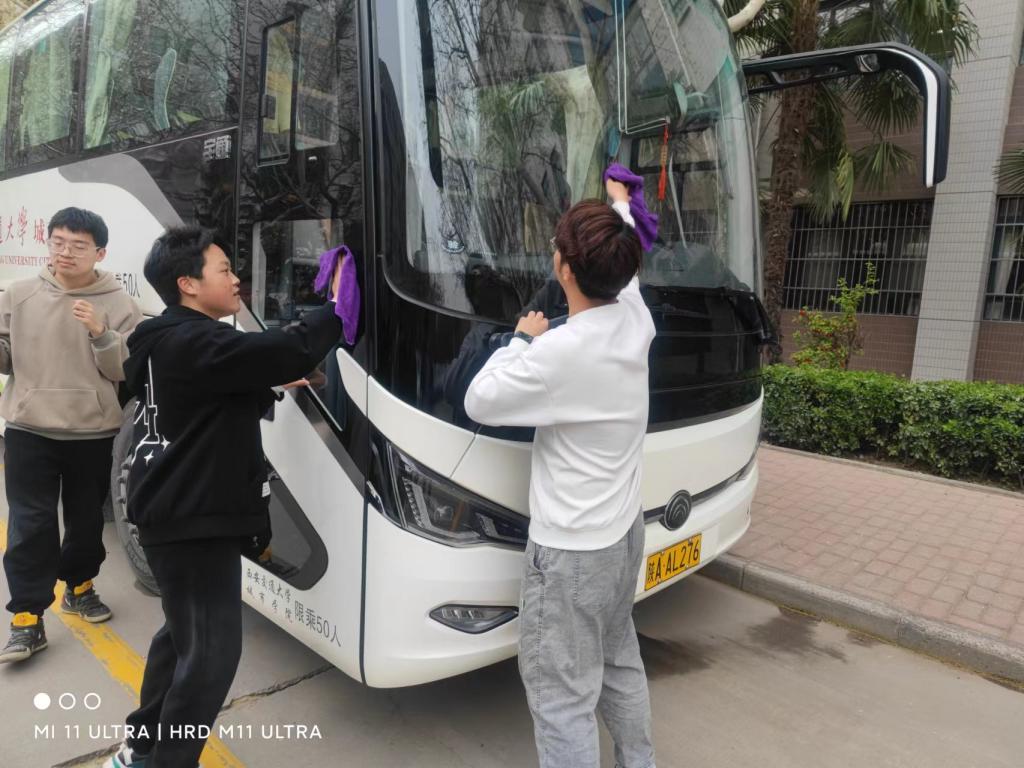 3月22日下午,经济类2201、2202班学生分成五组,分别对学院五辆校车进行了擦洗。同学们积极发扬不怕脏、不怕累的精神,个个争先,不放过任何一个死角,为学院师生们提供一个干净卫生的乘车环境。