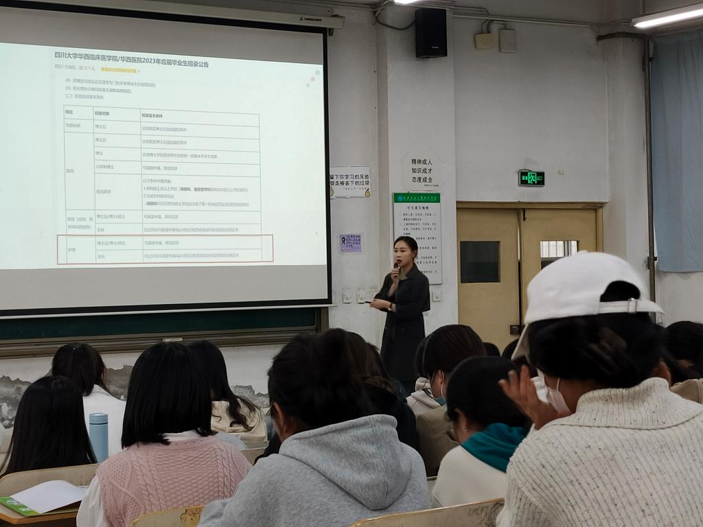 接下来由关叶桐老师向同学们分享了自己的考研经历,告诉同学们考研要有目的,考研要有持之以恒的决心及毅力,坚持才能收获成功。之后齐亚楠老师针对康复治疗学专业,分析了专业课考试主要内容并根据不同的报考方向推荐了相关的书籍,并鼓励同学们大胆尝试。
