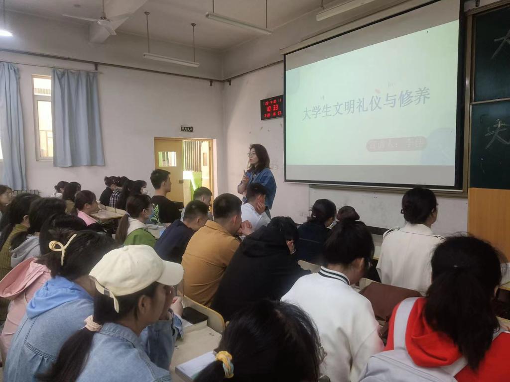 此次活动采取了讲座、案例分析、交流讨论等多种形式开展。王娇丹向同学们讲解了大学生行为规范的具体内容与重要性,传递了正确的行为准则和道德规范,希望同学们能加强培养学习意识,做到重视课堂,遵守课堂纪律,随后,李佳、黄菁茹以PPT形式对学生进行了感恩教育,希望同学们在日常学习生活中能够做到尊重师长,文明礼貌;最后,王娇老师、李佳和黄菁茹与同学们进行了交流讨论,帮助同学们更加深刻地认识到了自身存在的问题和不足之处。