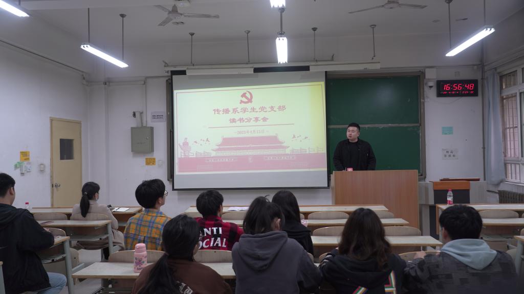4月13日下午,传播系学生党支部于教学楼D109开展第十一期读书分享会。传播系学生党支部书记杨耀聪、辅导员任瑾以及全体学生党员参加此次分享会。