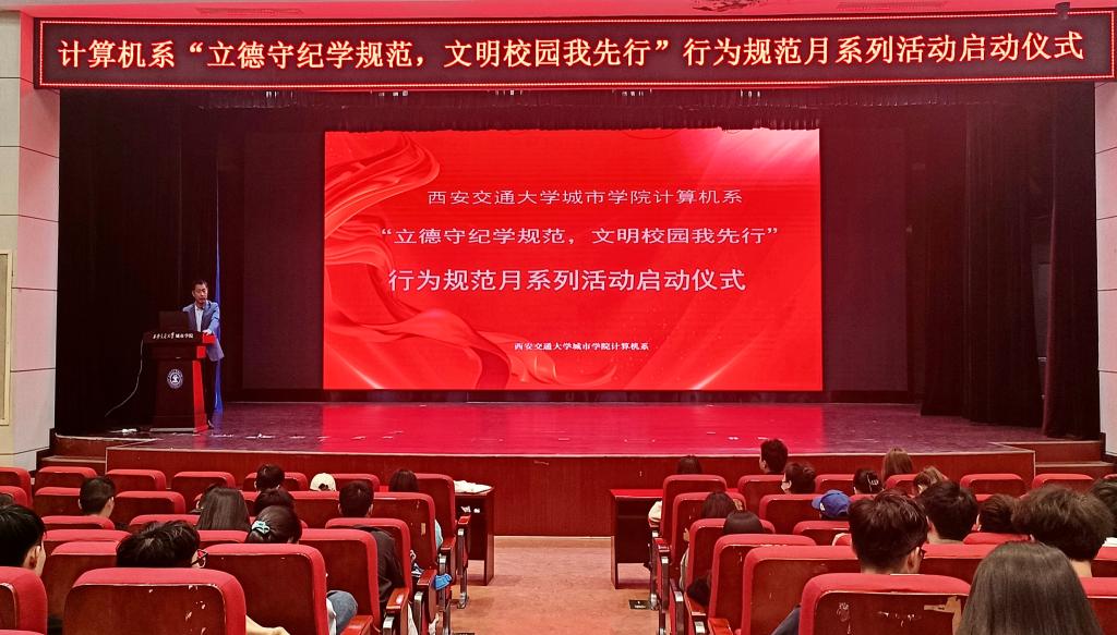 为加强大学生的文明行为规范教育,提高学生文明行为意识,规范学生日常行为,营造平安、文明、有序的校园氛围。yl7703永利官网计算机系于4月12日中午在教二报告厅开展了“立德守纪学规范,文明校园我先行”行为规范月系列活动启动仪式。计算机系主任助理刘敏涛、团工委书记康乃馨及学工办范文彬、高明瑜、宁嘉浩出席本次启动仪式,大一至大三年级班委以及所有团学干部参加本次活动。
