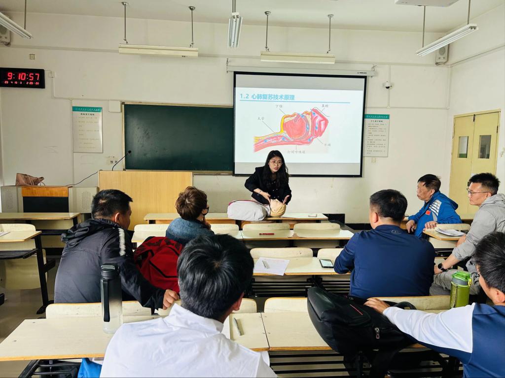 培训中,李换则老师通过PPT讲解,结合人体模型的演示,详细介绍了心肺复苏紧急救护的理论知识、复苏步骤、技术原理和操作步骤。
