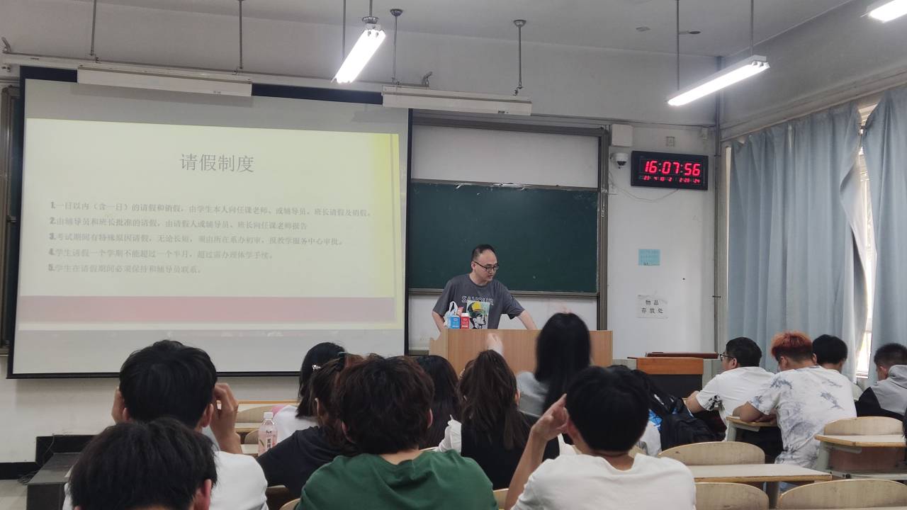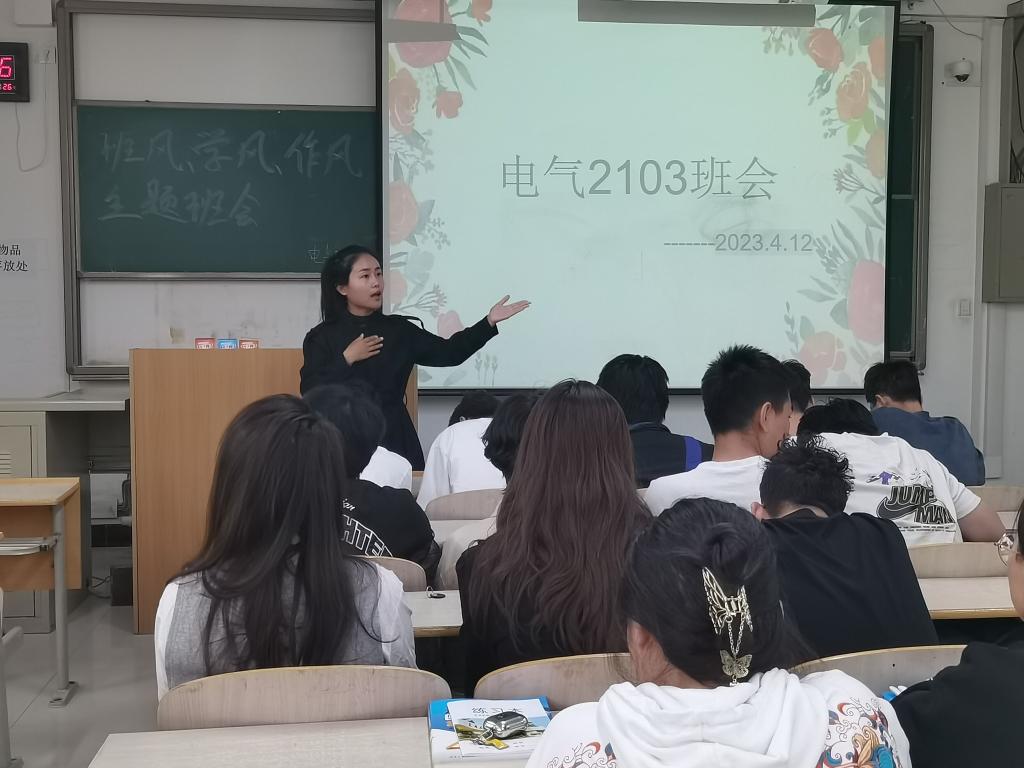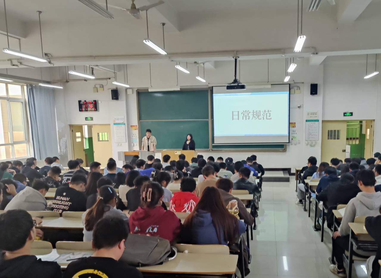 电信系辅导员针对全系学生以“大学生行为规范”为主题召开班会, 班会上各位老师均引导学生应准时上课、认真听讲、积极参与课堂互动、课前擦黑板、保持公共场所卫生、不在非吸烟区抽烟等, 同时也再次强调了早读晚自习、钉钉运动、请假和宿舍制度等日常行为规范。