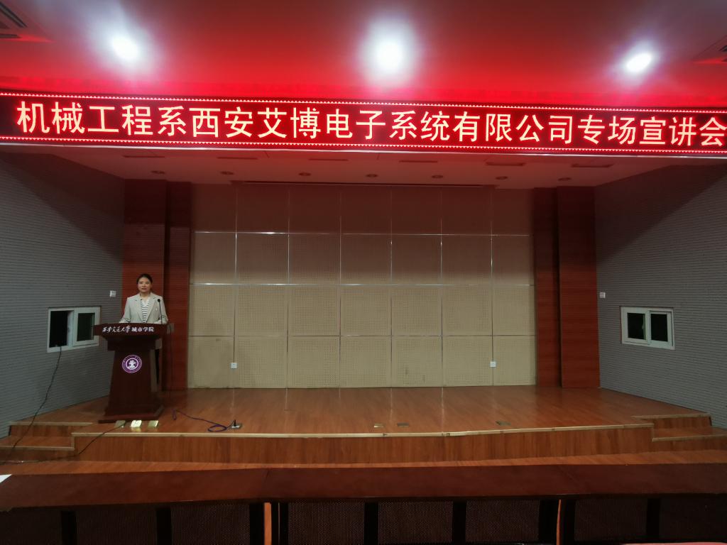 为深入贯彻落实党中央、国务院稳就业保就业决策部署,搭建用人单位与毕业生的沟通交流平台,推动企业和人才之间的双向交流,促进机械工程系毕业生更充分更高质量就业,4月19日下午,机械工程系邀请西安艾博电子系统有限公司在F100举行了“访企拓岗促就业——企业进校园”第五场活动。本次活动由机械工程系主任助理王丽丽主持,机械工程系毕业班未就业学生参加。