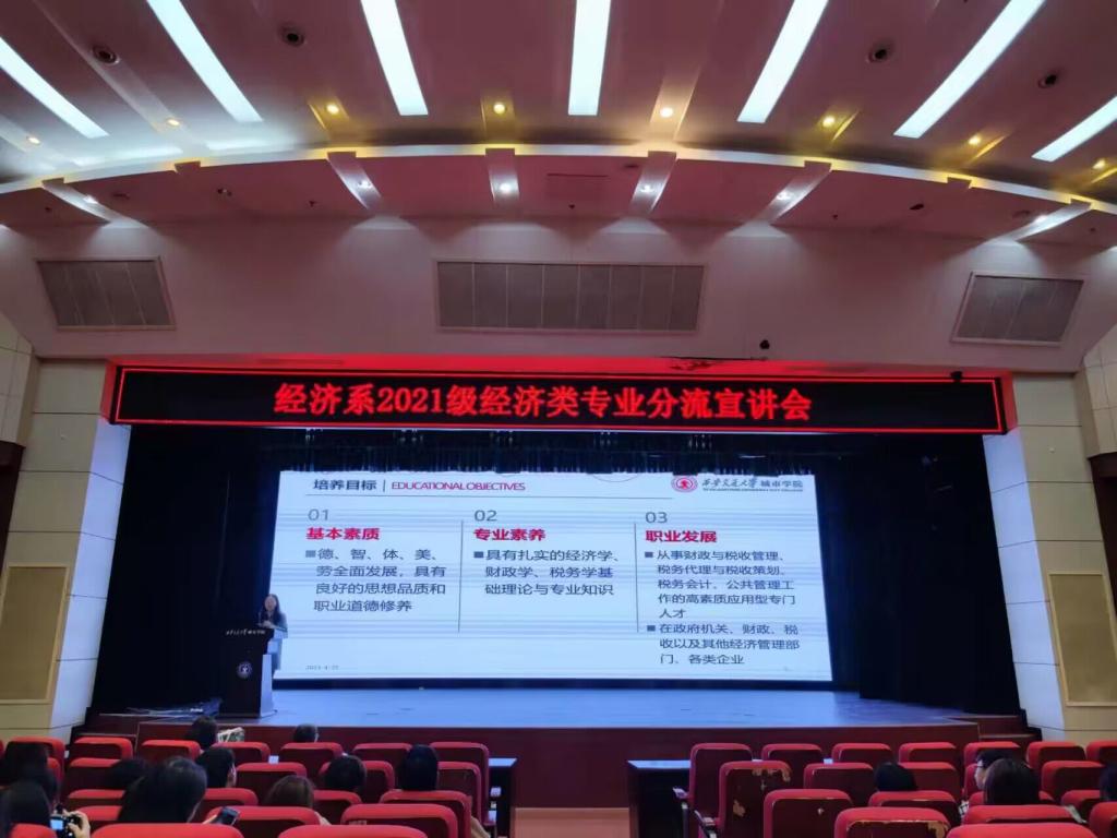 为了适应就业市场和创新创业人才培养的需要,使学生更好地了解经济系各专业的基本情况以及未来发展方向。4月25日,经济系在教二报告厅召开2021级经济类专业分流宣讲会。莅临本次宣讲会的嘉宾有经济系副主任白丹、财政专业负责人张娜、金融专业负责人李茂盛、经济系主任助理廉宇婷,本次宣讲会由经济系2021级年级组长杨静怡主持。