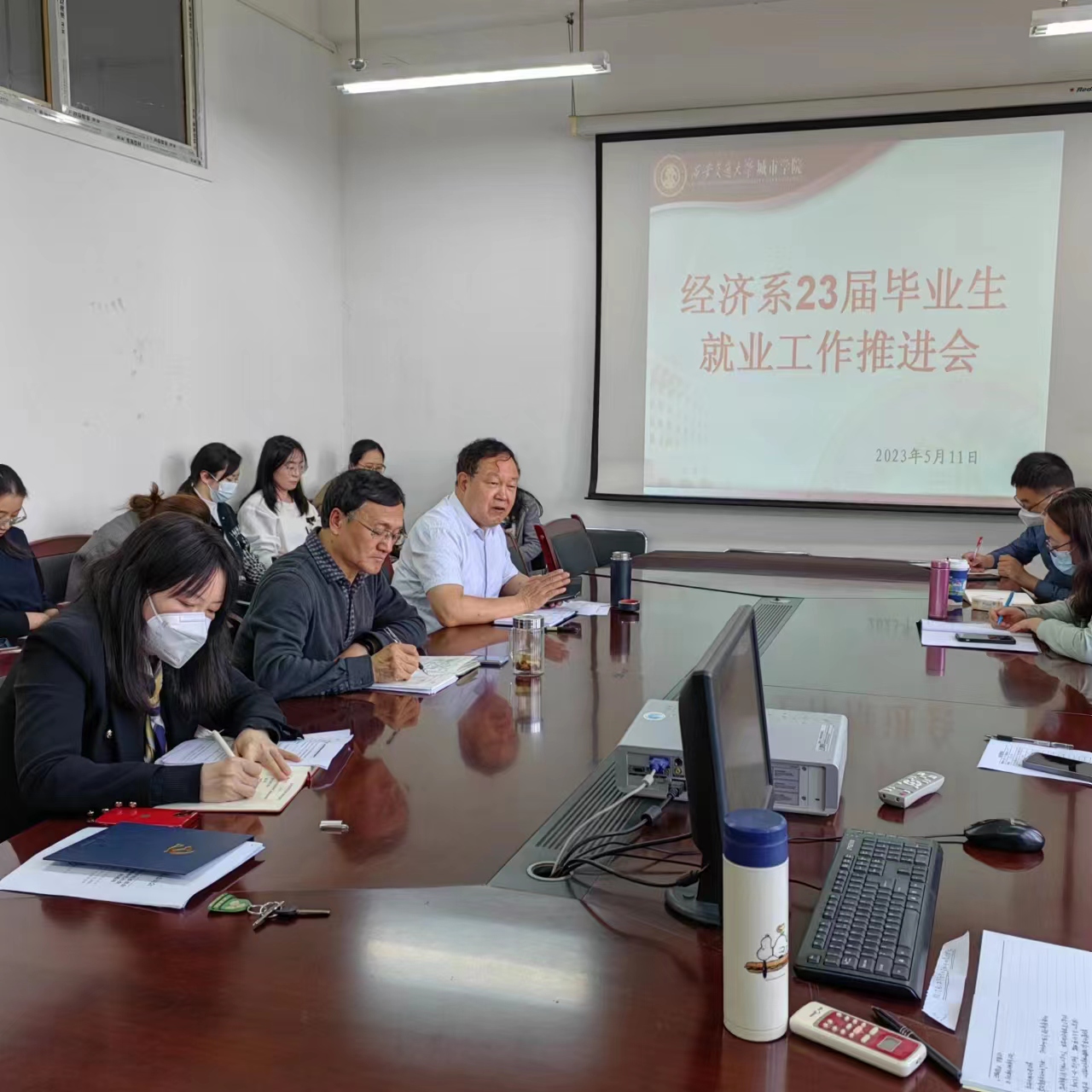 5月11日,经济在教2-225召开23届毕业生就业推进会,经济系主任张文科主任主持会议,经济系全体教职员工参加。