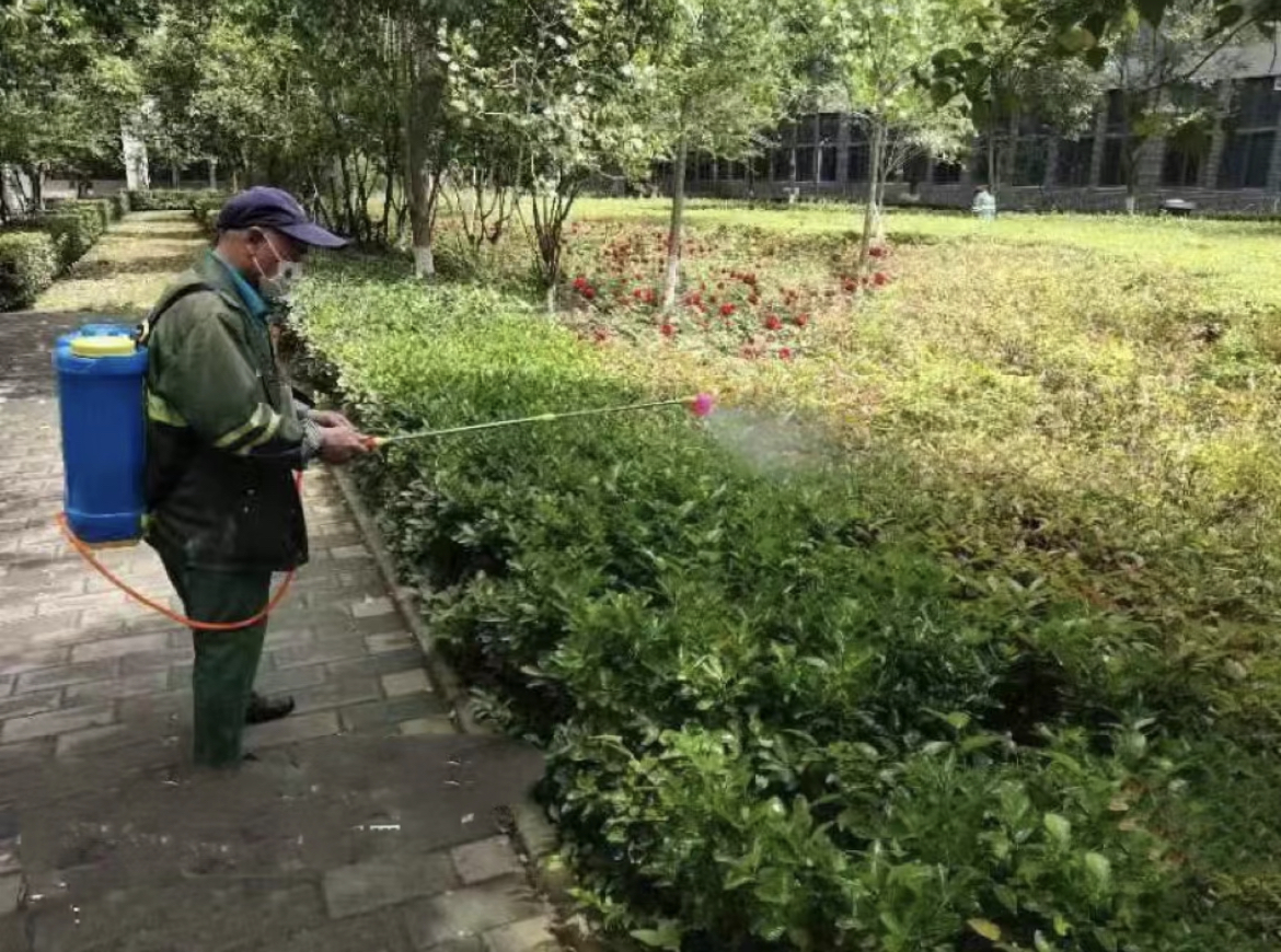 春夏之交,气温上升较快,栽培环境干湿变化比较频繁,正是白粉病的高发季节。为有效防治病虫害,条保部积极组织绿化工人加强整治工作。在做好日常养护工作的同时,加大巡查力度,集中对学院内绿植可能存在的白粉病进行全面普查;紧抓当前病虫害防治关键期,采取全部预防、局部防治的方式,切实将白粉病消杀到位。