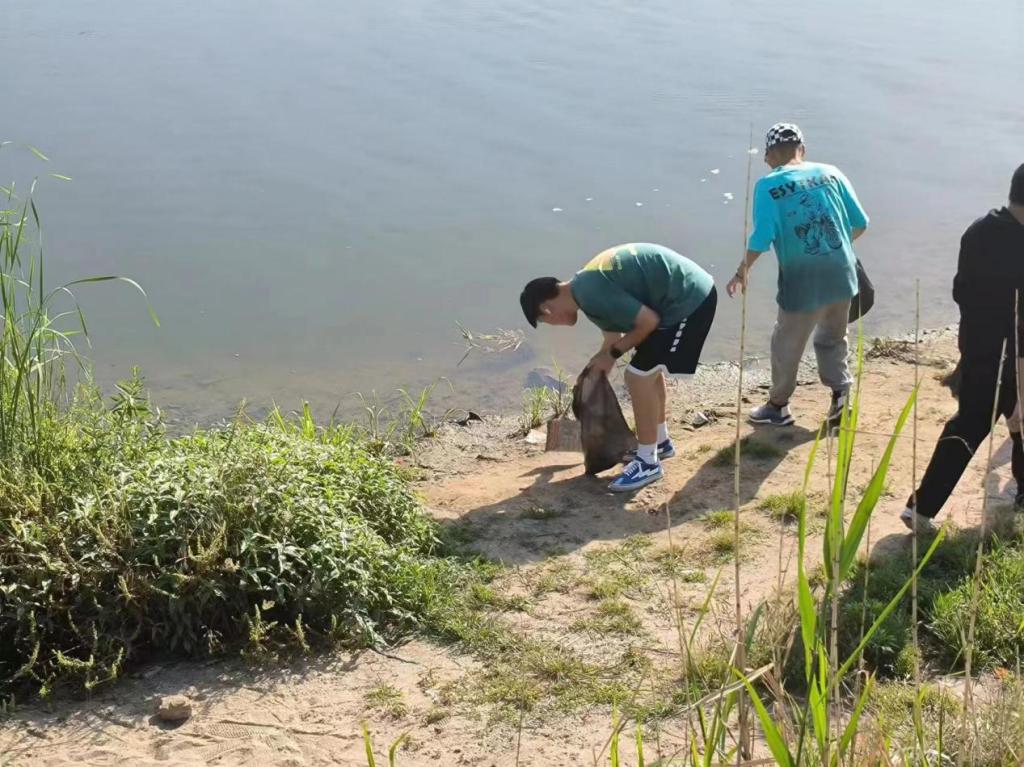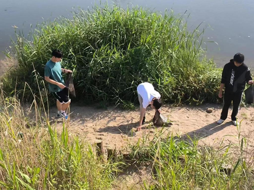 在净滩活动中,各位环保卫士在渭河边化身“水域净化师”,沿着江边进行巡查,尽力清理各种垃圾。同学们顶着炎炎烈日,尽管一个个都汗流浃背,但一想到这项活动背后的光荣使命,都非常认真坚定。