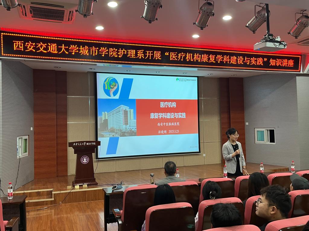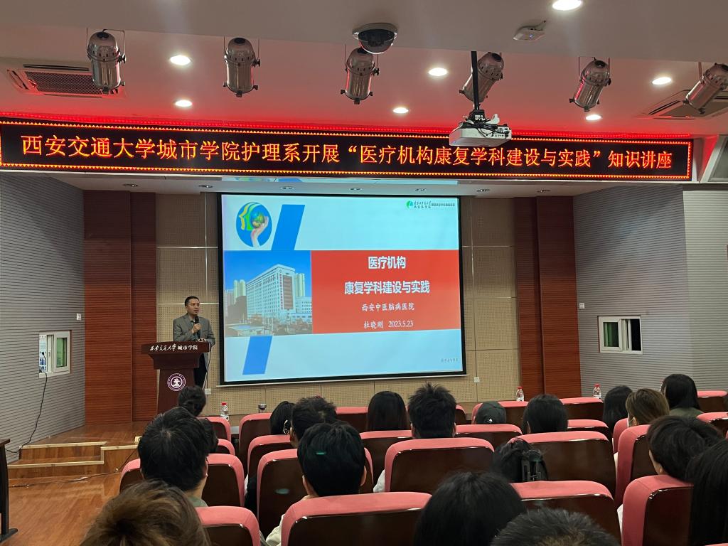 为增进康复专业在校生对医疗机构康复学科的了解,yl7703永利官网护理系于5月23日在F100开展“医疗机构康复学科建设与实践”知识讲座。本次讲座由西安中医脑病医院院长杜晓刚主讲。护理系常务副主任王梅芳,主任助理李楠,学生工作负责人王娇丹,以及全体护理系学工办教师及康复专业在校生参加本次讲座。