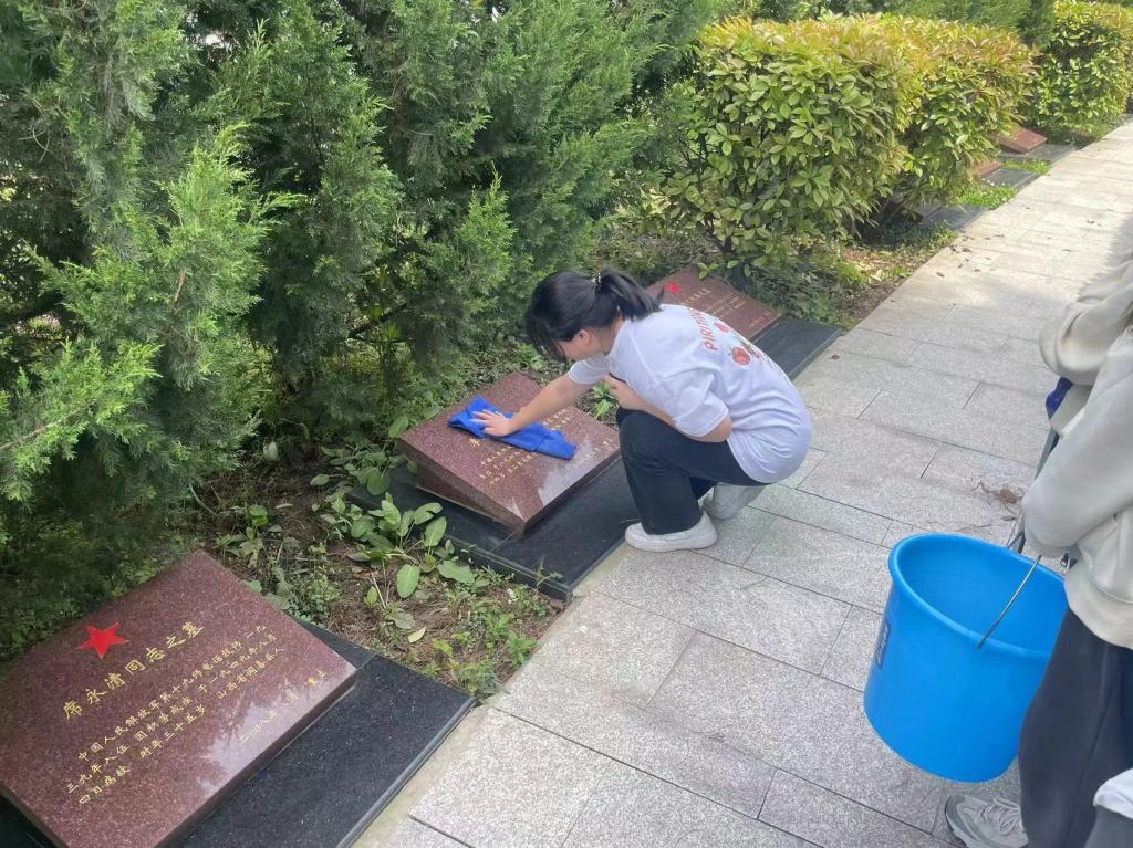 随后,经济系学生党支部、千阳志愿服务队以及学生干部肃立在纪念碑前开始祭扫仪式,并向革命先烈鞠躬、默哀、致敬,深切缅怀为革命事业献身的英烈们,瞻仰各位先辈的英勇事迹,学习先辈们的无私奉献精神。最后,同学们在园区开展志愿服务,对先烈墓碑进行清扫。