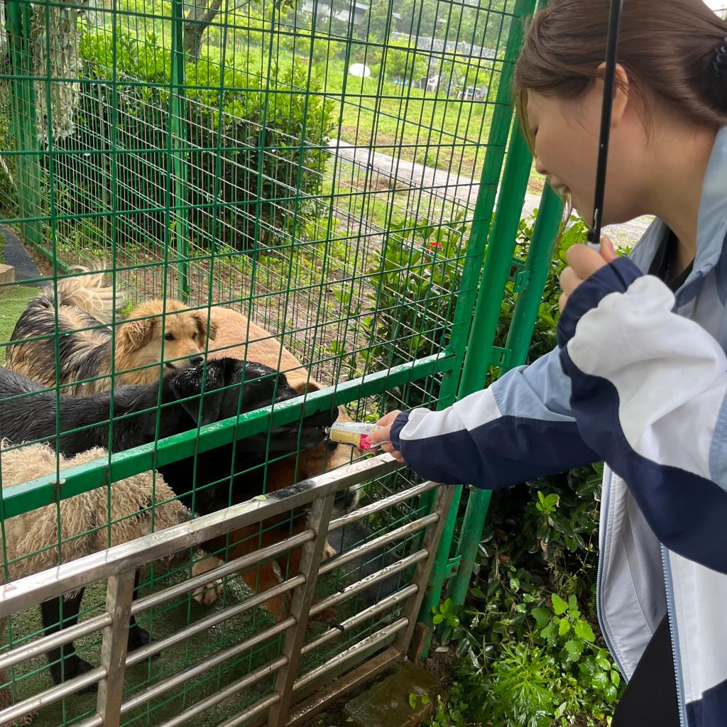 活动期间,志愿者们帮助驿站人员挂绳子晾晒物品、分装小狗的药品和保健品、给小动物们准备辅食。提前准备好食物给小狗们投食,在犬舍与小狗们进行亲密互动,用最大的善意对待这些可爱的小天使。