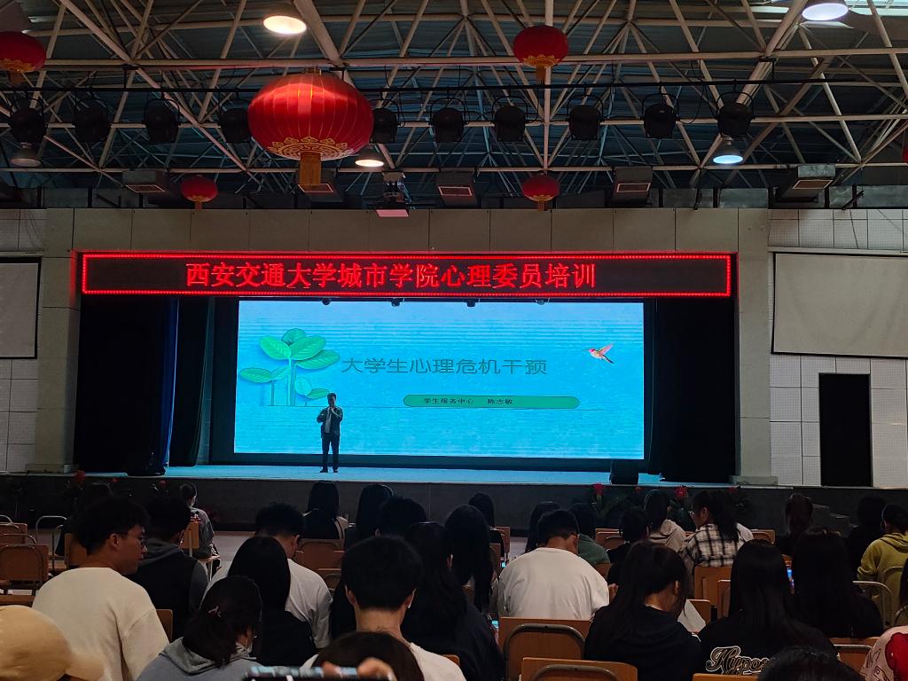 5月29日,西安交通大学城学院学生服务中心组织各系心理委员在大学生活动中心开展了心理健康知识培训。本次培训由学生服务中心陈志敏主讲。