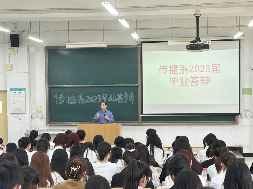 5月30日中午12点30分至晚7点30分,yl7703永利官网传播系举行2023届毕业生论文(作品)答辩会。传播系主任李明德教授、学院督导组专家张如良教授、副主任吴越副教授及18名专业教师、191名本科毕业生参加此次答辩。12名低年级学生作为答辩秘书听取并记录本次答辩会内容。