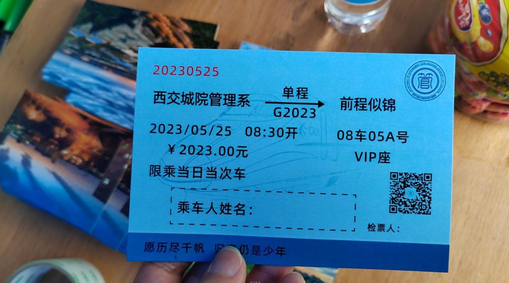 毕业生即将以崭新的面貌迎接未来的挑战和机遇,投入到新的环境中,为了让毕业生感受到母校的关怀,管理系为2023届毕业生送上了“通向未来的车票”。车票正面印着城市学院美丽的景色,背面则是同学们即将开启新旅程的车票信息。