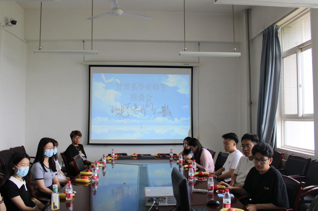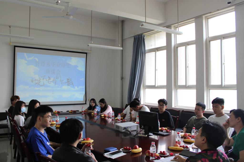 会上,毕业生们敞开心扉,就管理系的发展提出建议,对老师们四年来的付出表示感激,分享了考研考公的感受,同时就求职的经验与遇到的困难等与三位老师进行了分享。三位老师也结合自身经验以及身边人的亲身经历对同学们的问题提出了一些针对性建议,告诉同学们,要明确树立自己的目标并为之而努力,未来的道路需要稳扎稳打,一步一个脚印地走。最后三位老师也对现场的毕业生送上了美好的祝愿。