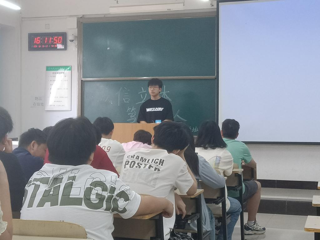 活动第一讲,由电信系21级学生杨泽远发言,杨泽远学习成绩优异,积极参加各类学科竞赛,且在学院团委担任办公室副主任一职,他向到场学生分享了自身如何兼顾工作和学习的经验,鼓励同学们在大学期间充分展现自我,抓紧对高数、英语和专业课程的知识积累,积极参加“电工杯”“全国大学生电子设计大赛”等各类学科竞赛。第二讲,由22级学生宋娅妮从国家助学贷款的目的、借贷方式、还款方式等几个方面为大家讲解国家助学贷款的相关内容,呼吁同学们应恪守诚信之德,常怀感恩之心,诚信借贷诚信还贷。第三讲,由辅导员梁新雨对此次活动进行总结发言,动员全体同学在接下来的期末考试中认真备考,诚信考试,在即将到来的期末考试中取得优异的成绩。