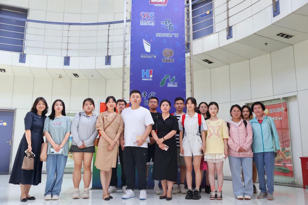 此次访企受到了陕西广播电视台新闻中心新闻广播、副总监董维娅,陕西广播电视台新闻广播政企部梁刚、李薇、焦媛,陕西广播电视台新闻主播靳博,陕西广播电视台新闻广播主持人王桐鑫等老师的热情接待。在走访期间,双方就实习生培养方案、主要工作范畴、职业发展规划等方面内容进行了深入交流。