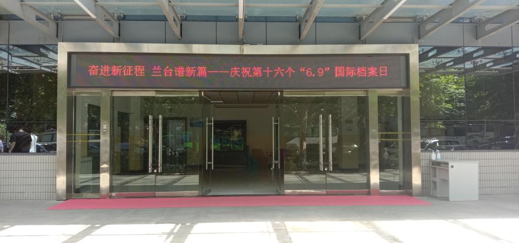 此外,档案馆在行政楼LED屏滚动播放“6.9”国际档案日主题宣传标语,营造浓厚的宣传氛围,并且以“奋进新征程 兰台谱新篇”为主题制作展板,在学生餐厅楼前进行展出宣传,展示了档案“存凭、留史、资政、育人”的价值。