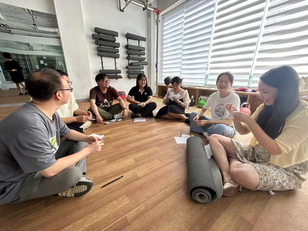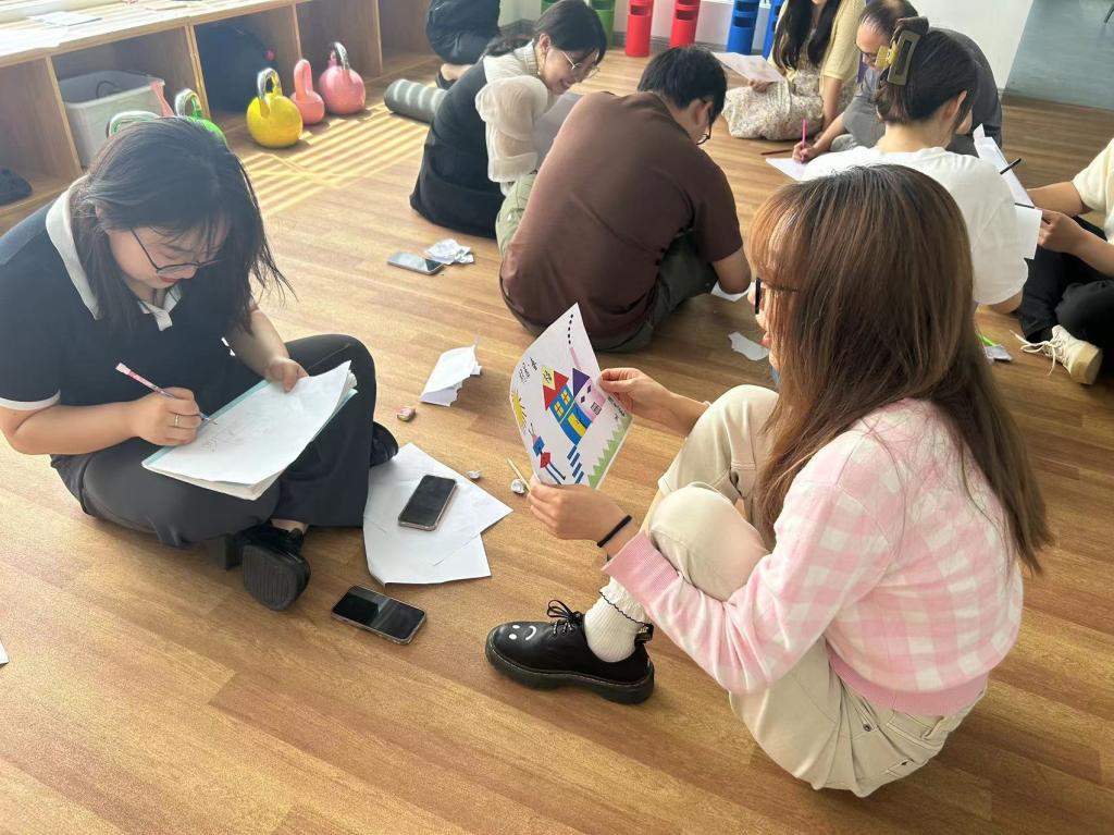 活动伊始,姚老师介绍了本次活动的目的、意义、团体契约及流程安排。活动由“形体雕塑”进行暖身热场。随后,陈志敏、张德馨两位老师分别在小组内指导大家开展“收获‘糖弹’”“我说你画”“信任圈”等活动,每个活动都紧密围绕恋爱主题展开,如恋爱中的沟通技巧、需求差异、平等与信任的亲密关系等。辅导员互相配合、积极合作、气氛非常活跃。