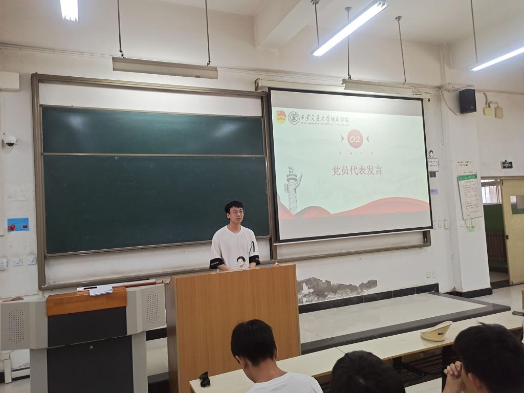 党员代表李元锟发言,他从自身感悟出发分享了他对党员“伴读团”制度的理解,并承诺用爱心,热心,细心,耐心,贴心,做好电信系学生思想进步的“引领者”,青春正能量的“传播者”,优良学风的“模范者”,和谐人际关系的“推动者”。