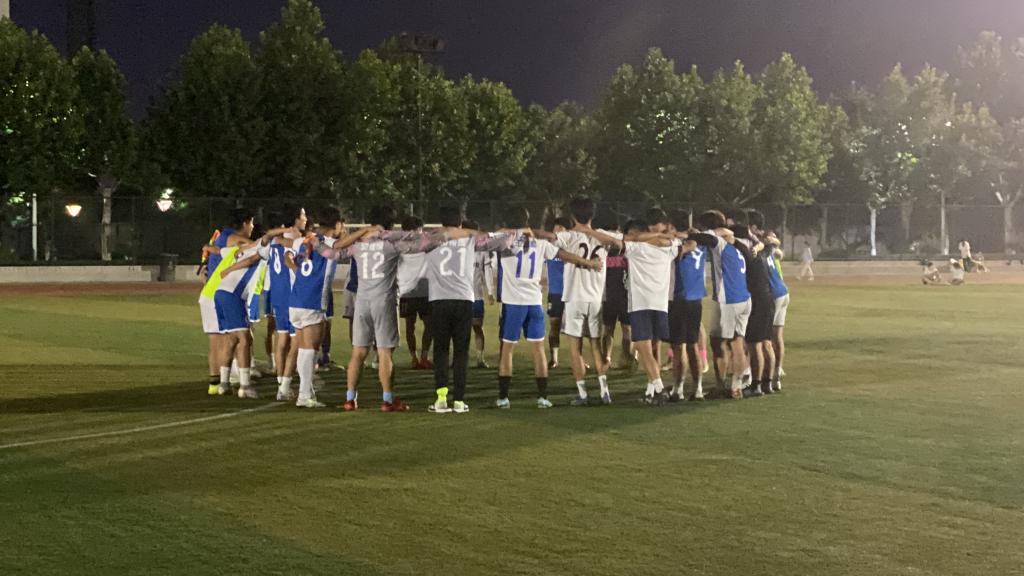 告别赛对阵双方是大一大二联队与大三大四联队,双方在比赛中表现出了很高的积极与热情,完成了一场精彩激烈的比赛。最终告别赛以6-6的比分结束,为大四队员们的城院足球时光画上了圆满的句号。赛后,全体队员围成一圈为即将离开的大四队员们再次送上祝福,他们也完成了最后一次为城市学院足球队的加油呐喊。