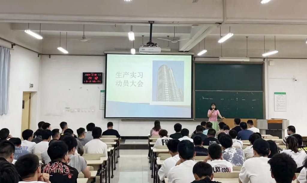 6月19日,土建系在教学楼F100向参加生产实习的全体学生召开实习动员大会,土建系郭秀芹老师强调了生产实习的重要性,讲解了生产实习的时间安排,指导教师安排,实习单位情况,自主实习的单位选择,实习要完成的任务和实习的考核标准等。
