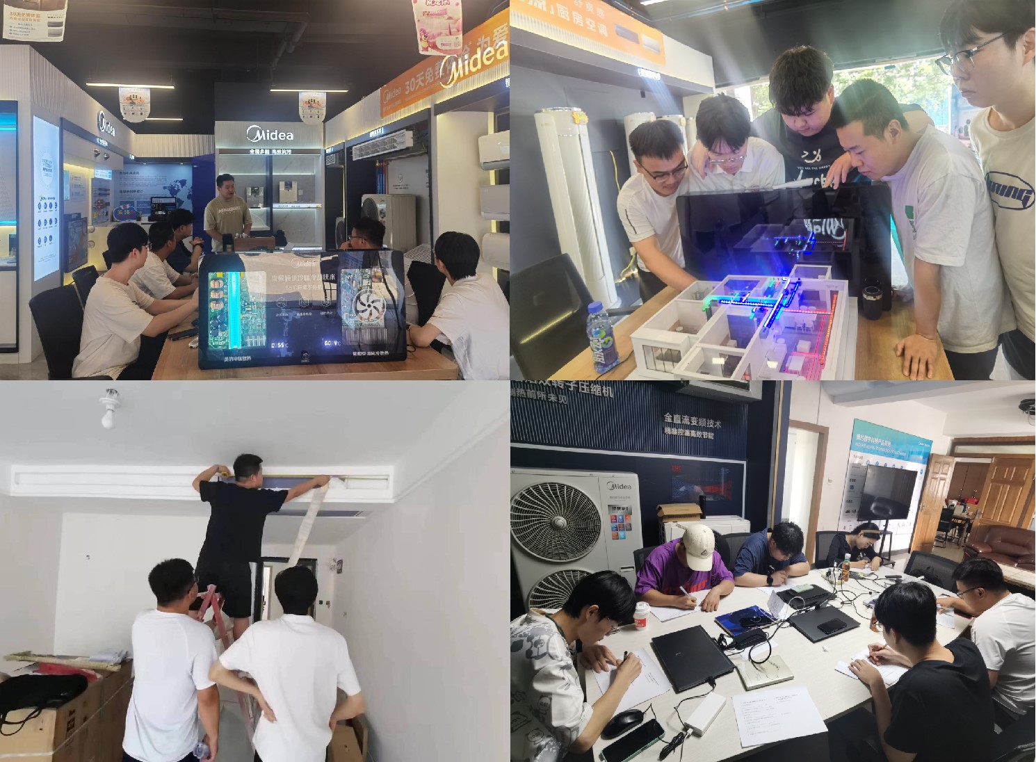本次生产实习主要包括空调系统设计、空调安装实地学习、销售外拓三大部分,同学们不仅在绘图设计中实现了小型多联机系统到大型多联机系统的选型布置,而且也切身观察了空调安装时每一实际部件的连接方式。具象及生动,该闭环实操加深了学生们对理论知识的认识和理解,达到了利用专业理论解决工程实际问题的目的。
