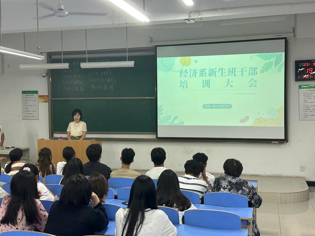 举行2023级经济系学生干部培训会。为增强新生班干部的综合素养和工作能力,加强学生干部队伍建设,更好地服务师生,经济系团工委书记蒋美一帆、副书记高茗玥、办公室负责人高屹立分别对新生班干部展开培训。要求大家做好老师与学生之间的“桥梁”,协调好工作与学习的关系,树立良好的形象,立足工作岗位,培养实干精神,踏实工作,主动思考,加强自身综合素质的提高,努力成为综合性人才。