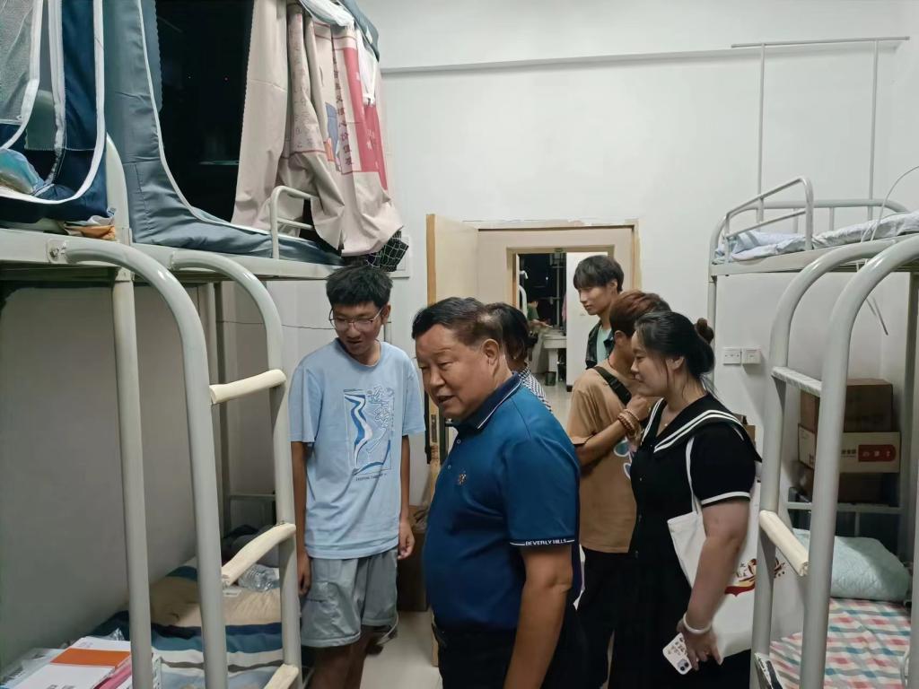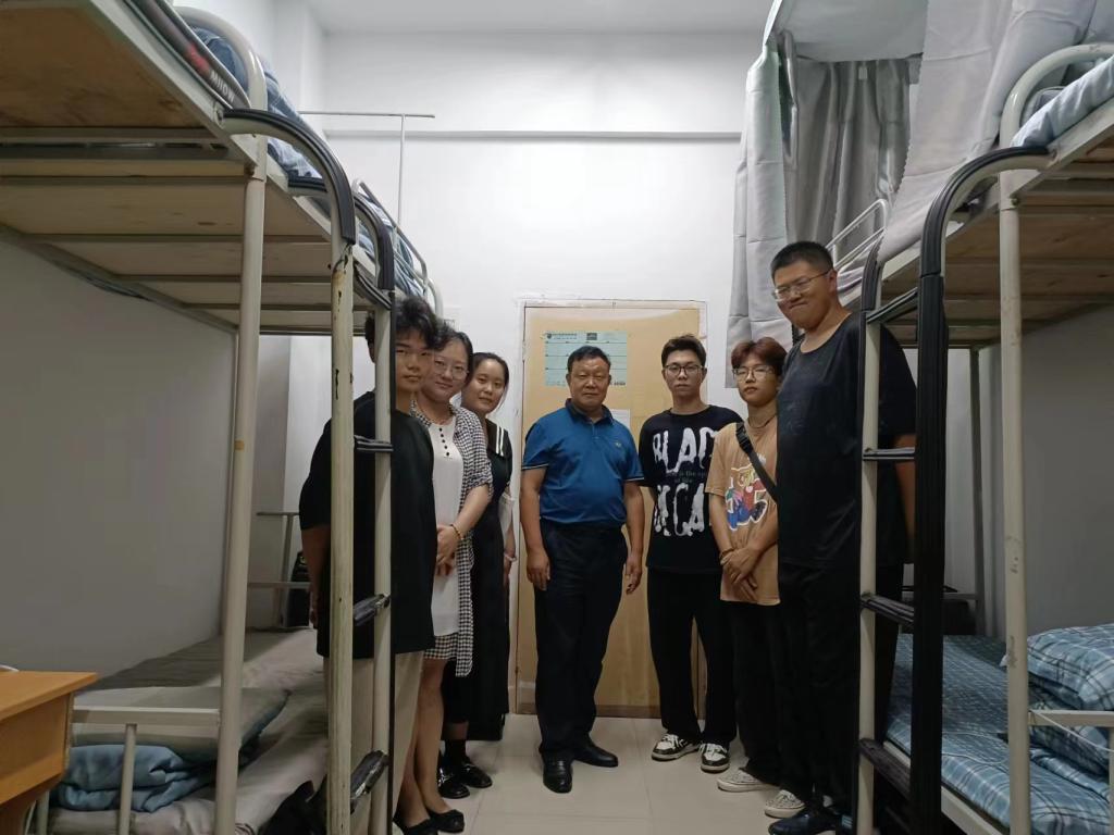 在走访过程中,老师们仔细查看了新生宿舍的设备与入住情况,与学生们进行了亲切的交谈和问候。系主任张文科亲切地对新生表示了欢迎,详细了解同学们入学后饮食、学习生活等情况,鼓励同学们要快速融入集体,适应学校新环境,调整作息,为后续的学习做好充分的准备。副主任杨健全勉励大家要做好学业规划,立下目标,通过努力奋斗去实现。副主任白丹强调,寝室是同学们的温馨“小家”相聚即是缘分,同学们要珍惜这段情谊,与“家人们”和睦相处,营造出美好和谐的寝室文化氛围。