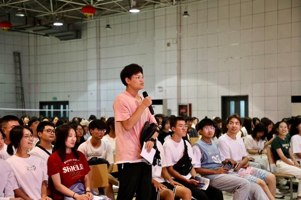 朱旭副院长首先从数学的本质和重要性入手,从考研、学校、社会等方面阐述了数学学习的重要性,并就如何养成良好的数学思维和数学学习方法提出了自己的建议,鼓励同学们勤学善思,培养良好的学习习惯。接着,朱旭副院长讲解了高中数学与高等数学学习的联系,由浅入深地梳理了相关知识,使同学们更加明确高等数学的结构,理解数学概念的本质。最后,他分析了当前考研形势,强调了考研对提升专业能力与视野,提高就业机会与质量有着重要的意义。并结合自己的工作经历及几道真题分析了考研数学试题的命题思路,使学生对考研数学题目的构成有了更充分的了解,也让同学们对自己的未来发展、职业规划和就业前景有了更加明确的认知。在互动环节,同学们与朱旭副院长展开积极地交流讨论,并就自己对某些数学问题的理解及个人未来规划向朱旭副院长请教。对于同学们的问题,朱旭副院长都耐心地一一解答,针对同学们现阶段面临的一些数学问题也给出了三点建议:一是养成独立思考的习惯,明确做作业的目的,理解定理公式,深入思考;二是养成良好的作业习惯,审好题、做好题、及时纠错;三是夯实数学基础,掌握“课前预习-课堂听讲-课后作业-平时答疑”的学习方法,真正做到“听懂、练会、考好、用活”。
