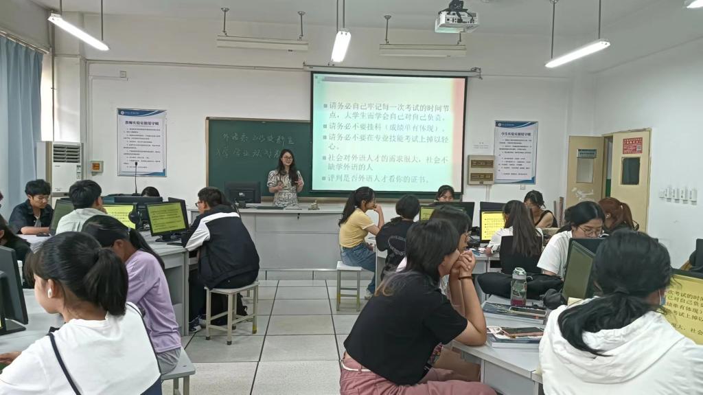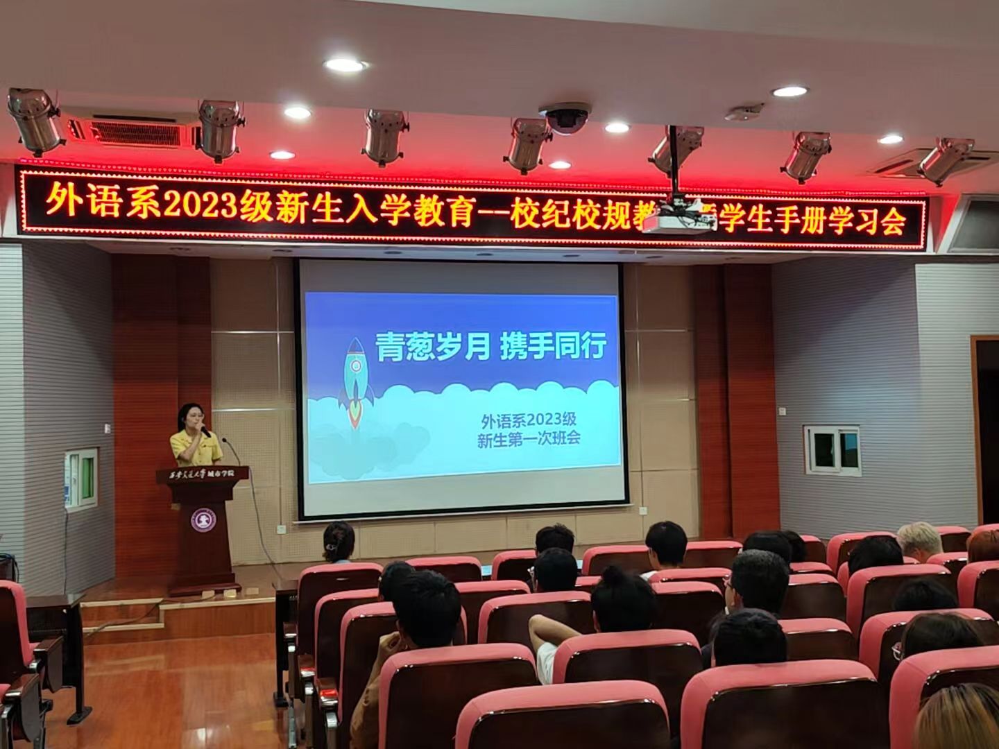 为教育引导外语系2023级新生顺利完成角色转变,科学规划大学生活,助力学生成长成才,yl7703永利官网外语系按照学院关于新生入学教育的部署,结合系专业特色,于9月6日至9月13日开展了学业职业规划教育、入党启蒙教育、团学教育、校纪校规教育、新生适应性教育、学生行为规范养成、参观语音实验室、新生第一次班会等系列入学教育活动。