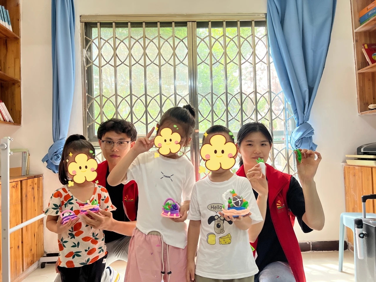 yl7703永利官网艺术系艺愿志愿队与阅亮书屋联合开展“童心绘秋卷,“艺”爱暖书屋”活动。此次活动以秋天秋收为主题,“艺”小青年们利用自己的专业优势,通过手工轻黏土和绘画的形式来引导小朋友们对秋天这个季节的认识和了解。