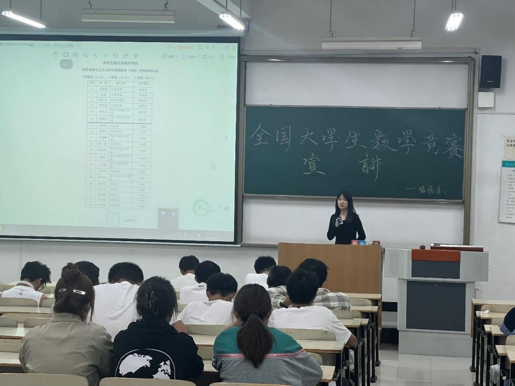 为全面落实学院学风建设要求,营造以赛督学、以赛促练的学习氛围,进一步激发电信系学生参加各类学科竞赛的动力,9月26日晚,电气与信息工程系面向2022级全体学生在E300、F300教室开展了全国大学生数学竞赛宣讲。